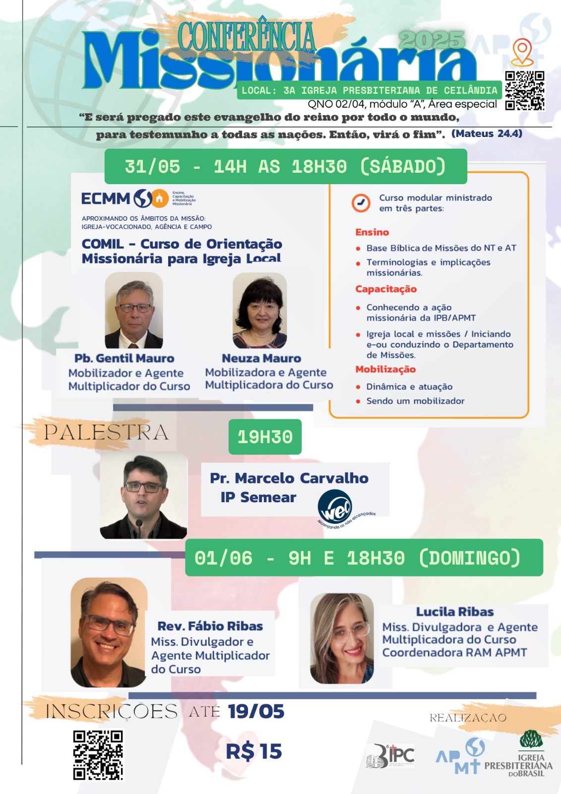 Participe desse evento conosco e amplie sua visão e atuação em missões.